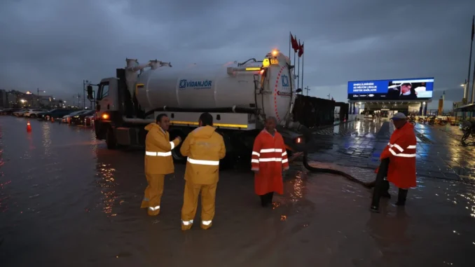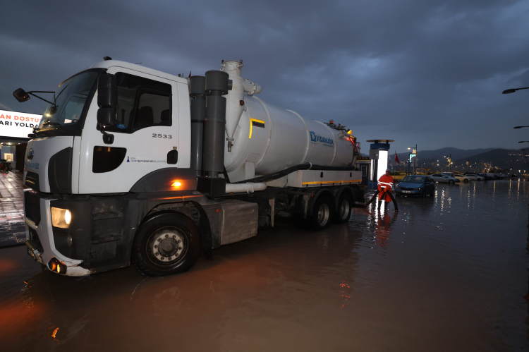 İZMİR (İGFA) – Meteoroloji Genel Müdürlüğü’nün ikazlarının akabinde İzmir genelinde tesirini artıran yağış ve olumsuz hava şartlarına karşı İzmir Büyükşehir Belediyesi tüm üniteleriyle alanda vazife yapıyor.