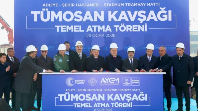 KONYA (İGFA) – Ulaştırma ve Altyapı Bakanlığı ile Konya Büyükşehir Belediyesi tarafından yürütülen Stadyum-Şehir Hastanesi Tramvay Çizgisi ikinci etap çalışmaları kapsamında TÜMOSAN Köprülü Kavşağı’nın temeli düzenlenen merasimle atıldı.