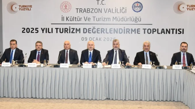 TRABZON (İGFA) – Trabzon Büyükşehir Belediye Başkanı Ahmet Metin Genç, Kültür ve Turizm İl Müdürlüğü tarafından düzenlenen ve Trabzon Valisi Aziz Yıldırım’ın başkanlık ettiği 2025 Yılı Turizm Kıymetlendirme Toplantısı’na katıldı. 2026 yılında hayata geçirilmesi planlanan turizm programlarının da istişare edildiği toplantıda TBMM Bayındırlık, İmar, Ulaştırma ve Turizm Kurulu Başkanı ve AK Parti Trabzon Milletvekili Adil Karaismailoğlu, AK Parti Trabzon Milletvekilleri Yılmaz Büyükaydın ve Vehbi Koç, Trabzon Vilayet Jandarma Kumandanı Bahittin Murat Yakın, Vilayet Emniyet Müdürü Ali Loğoğlu, Ortahisar Kaymakamı Gürkan Demirkale, Trabzon Vilayet Kültür ve Turizm Müdürü Tamer Erdoğan, AK Parti Trabzon Vilayet Lideri Sezgin Mumcu ile turizm paydaşları yer aldı.